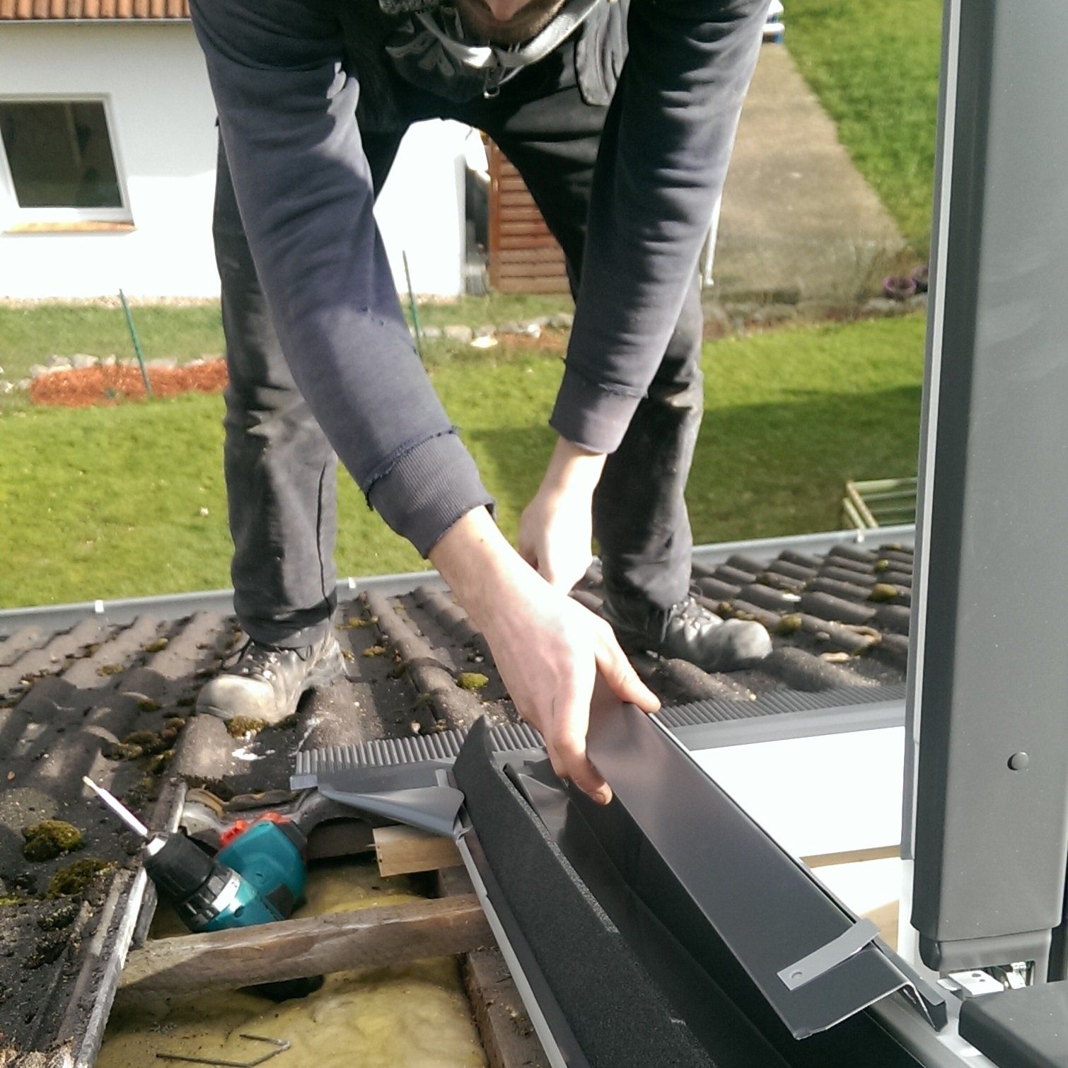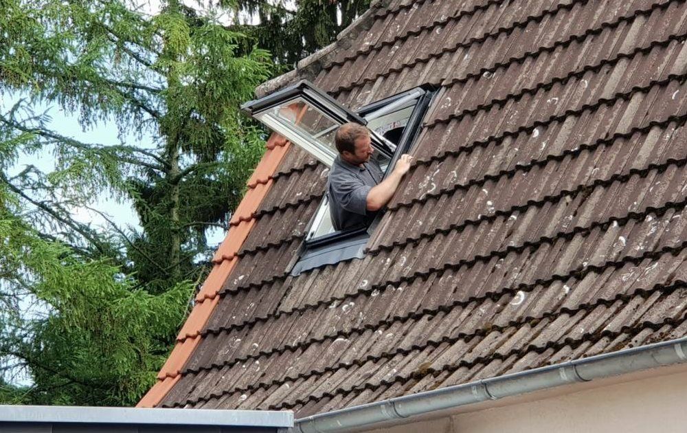 Hier sehen Sie unsere Dachdecker und Praktikant bei den Einbau eines Dachflächenfensters: