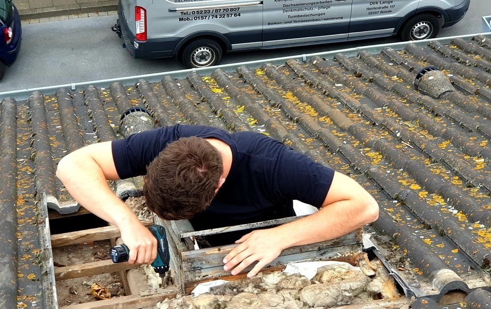 Hier sehen Sie unsere Dachdecker bei den Einbau von Dachflächenfenstern in Herford: