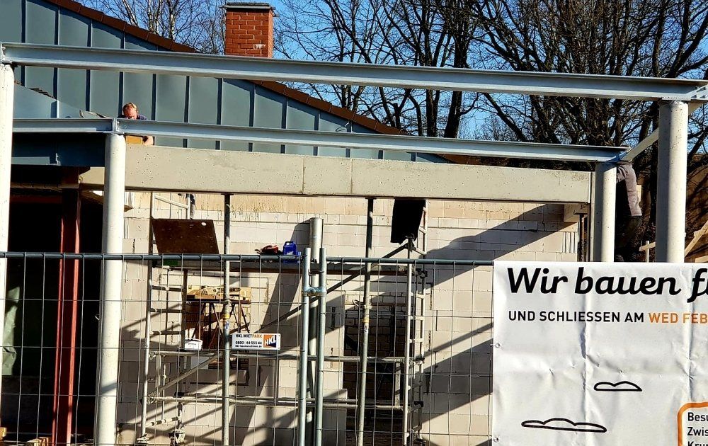 Hier sehen Sie unsere Dachdecker bei den Flachdachbau in Hamburg Eidelstedt an den Aldi Markt: