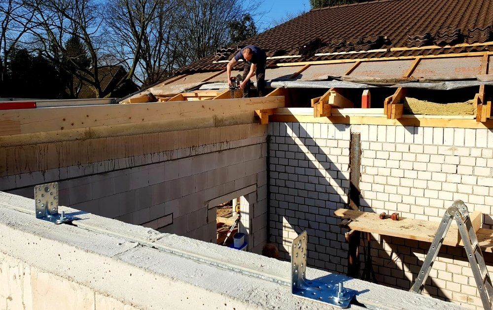 Hier sehen Sie unsere Dachdecker bei der Carport Dachsanierung in Bünde: