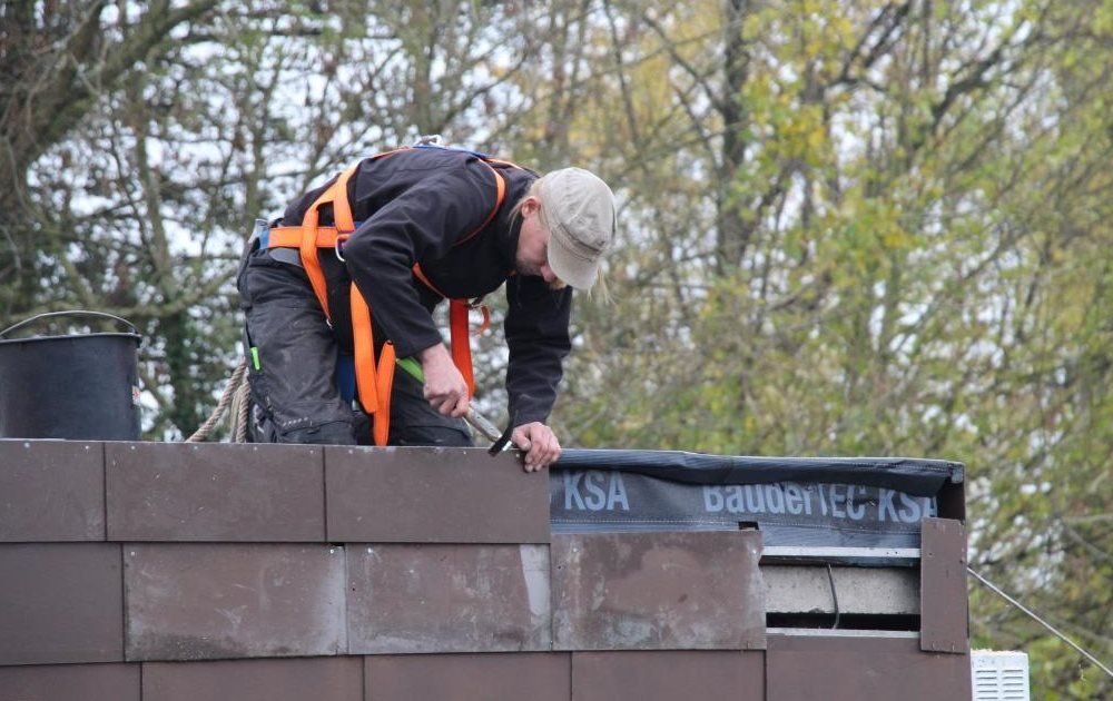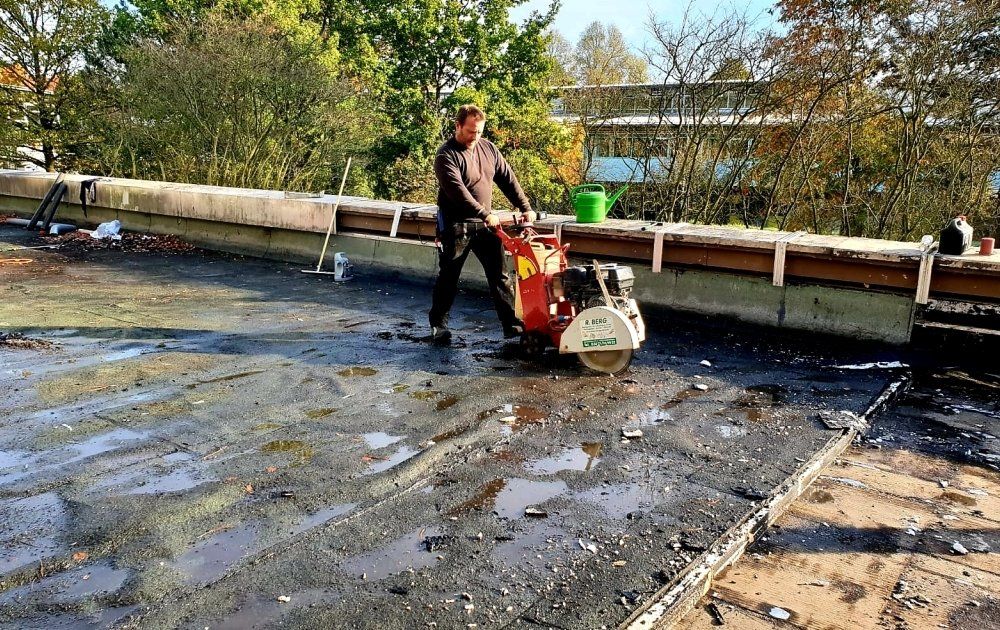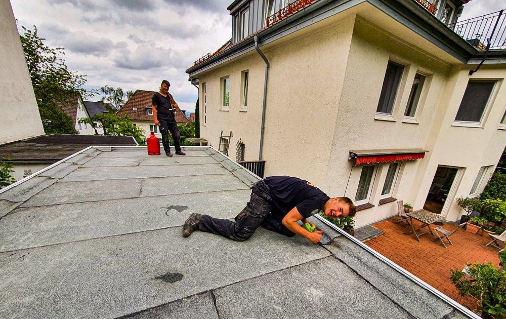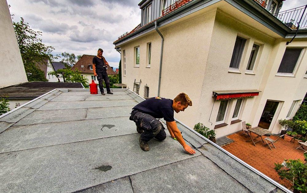 Hier sehen Sie unsere Dachdecker bei der Flachdachsanierung in Werther: